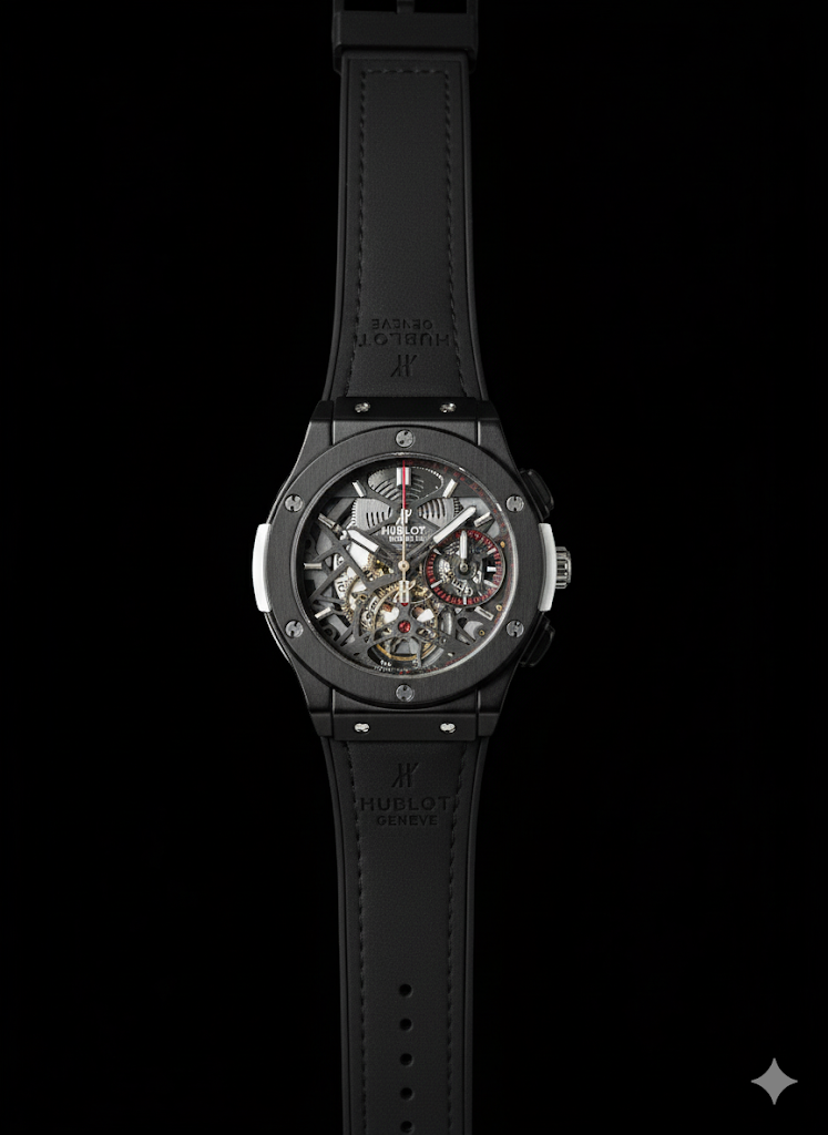 The Hublot Skeleton Automatic reveals the art of time with its open-heart mechanism and bold black design. Built for those who crave luxury with strength, this masterpiece turns engineering into style — every gear tells your story